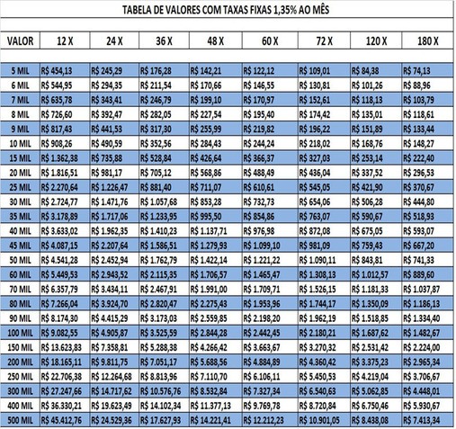 R$ 5.000,00 em 36 x R$ 209,79 Fixas - Carnê